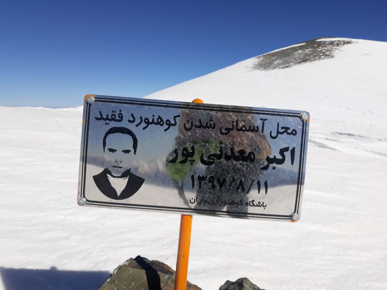 مسیر یال کهار را پیش گرفتیم و بالا میرفتیم . درست زیر قله کهار با تابلو کوهنوردی که در همین مکان جان خود را از دست داده بود روبه رو شدیم .زنده یاد اکبر معدنی پور روحش شاد و یادش گرامی