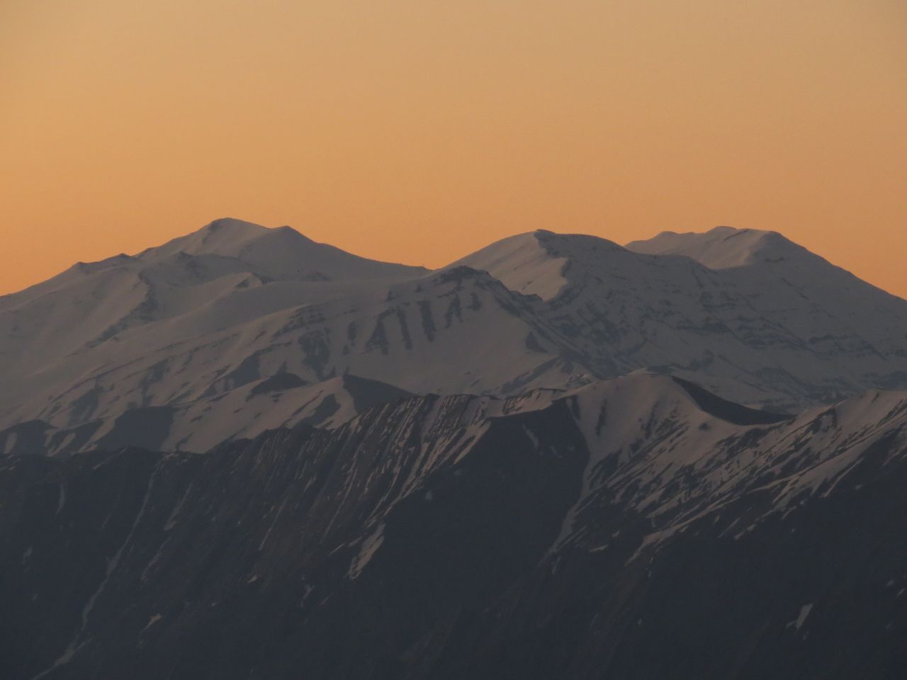 اخرین هدف ما قله هفت خانی بود که از دور نمایان بود .مسافت طولانی تا هفت خانی نداشتیم اما برف زیاد و شل سرعت مارا کمی کند کرده بود .در گوشه ایی استراحت جزئی انجام دادیم و دوباره حرکت کردیم.یال به یال مسیر را طی میکردیم.قرار بود که از ده اویزر فرود بیایم . مسیری ایمن انتخاب کرده بودیم .که با گذشتن برف چالی طولانی به کف دره اویزر میرسید .لذا کوله هایمان را در ابتدای فرود این مسیر گذاشتیم وبه سمت قله حرکت کردیم .ساعت ۱۷:۴۵ به قله رسیدیم و عکس هارا گرفتیم .تایم گذشته بود وباید سریع فرود میامدیم. البته میدانستیم که بالاخره به تاریکی شب برخواهیم خورد .تمام مسیر های فرود را میدانستم اما مسیری که به نظر کوتاه تر بود ده اویزر بود . اما ای کاش این کوتاهی را علت نمیدانستیم .البته این هم تجربه ایی ناب بود .