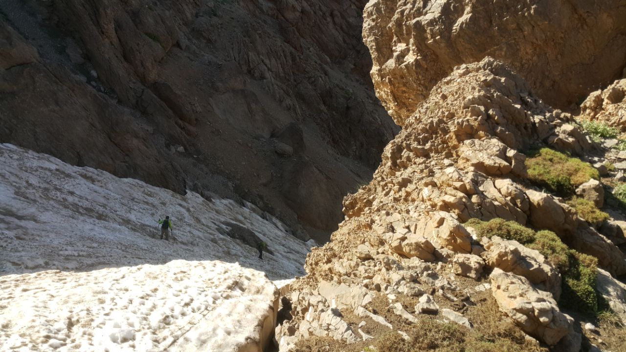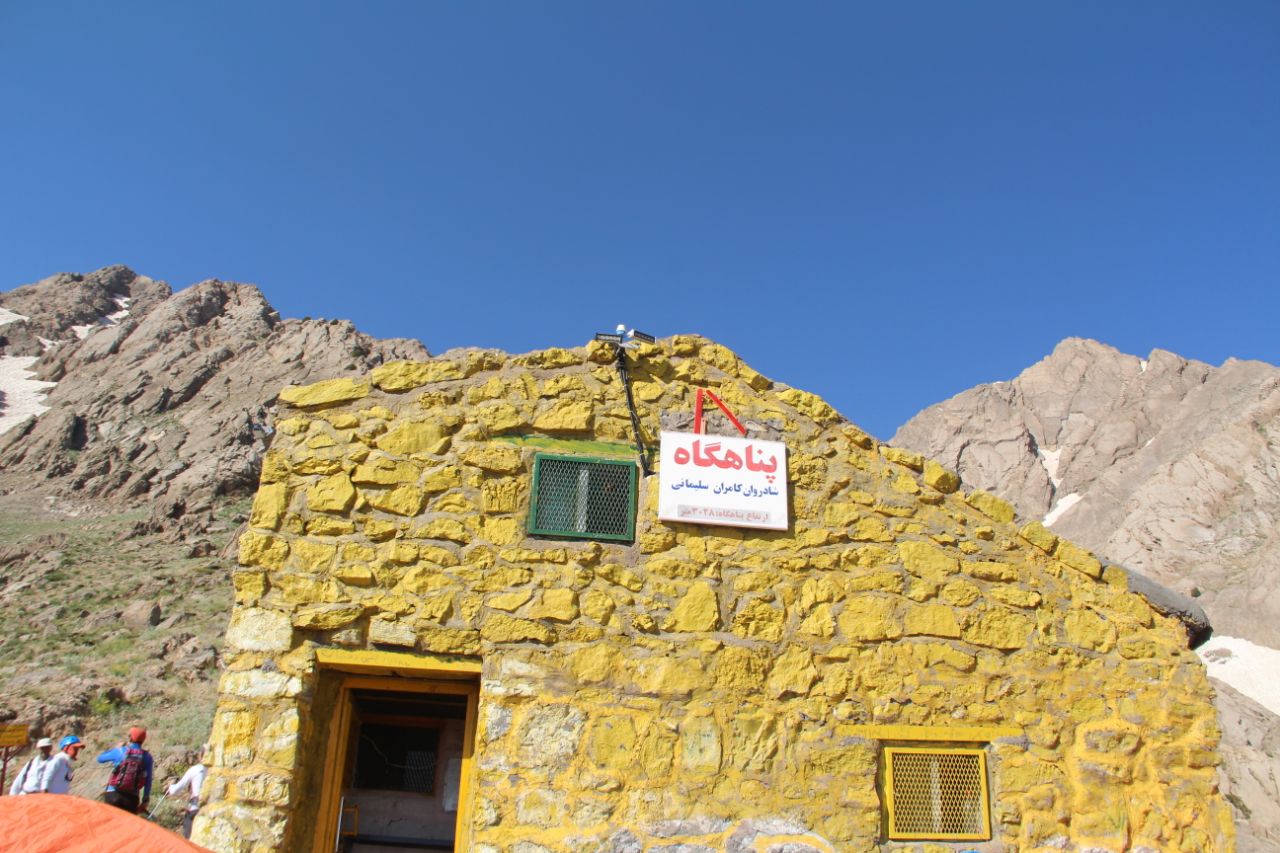 به راه افتادیم .پناهگاه از دور مشخص بود . زمان خیلی زیادی برای رسیدن به پناهگاه گذرانده بودیم .بالاخره ساعت ۹ صبح به پناهگاه کامران سلیمانی به ارتفاع ۳۰۳۳ متر رسیدیم . آب خیلی خوبی در کنار پناهگاه جریان داشت . با صرف صبحانه و کمی استراحت کردن دستور حرکت دادیم .