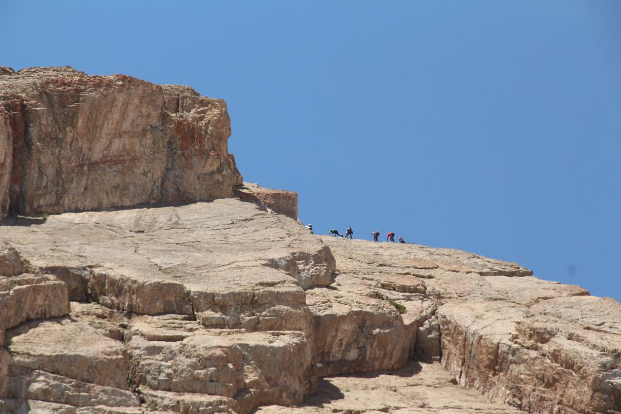 به سرپرست کانون فرهنگسرای بهمن عرض کردم که از اینجای صعود شرایط سخت تر و مهارت تک تک افراد مورد بحث است واگر میشود گروه را به دودسته تقسیم کنیم .یه گروه به سمت قله حرکت کند ویه گروه تا زیر قله بیایند که موافقت انجام نشد .
