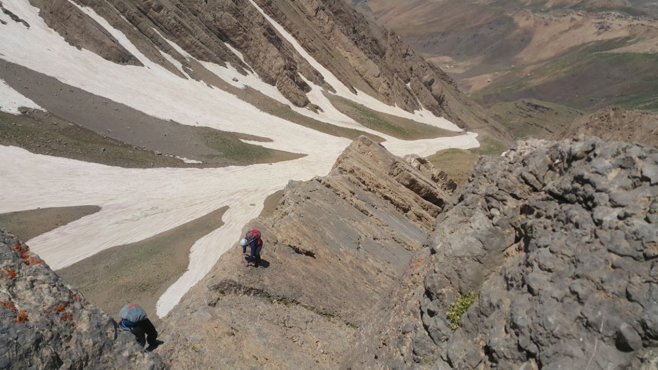 ۳-مسیر شصت خدا برای صعود زیاد مناسب نیست وماهم که بالا رفتیم چاره ایی نداشتیم. درسته گرده و تیغه ایی در کار نیست ولی مسیر ریزشی میباشد و بالارفتن را سخت میکند .